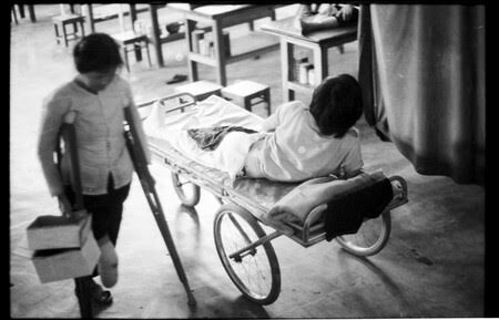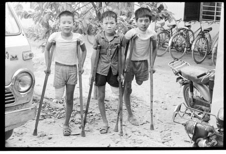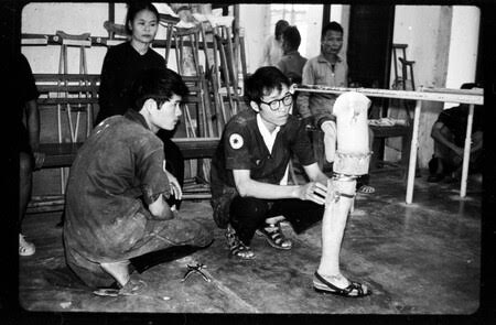 In 1971 some of the political prisoners who were held in Tiger Cages—enclosures too small to stand—were released. Their leg muscles had atrophied and they could not walk.