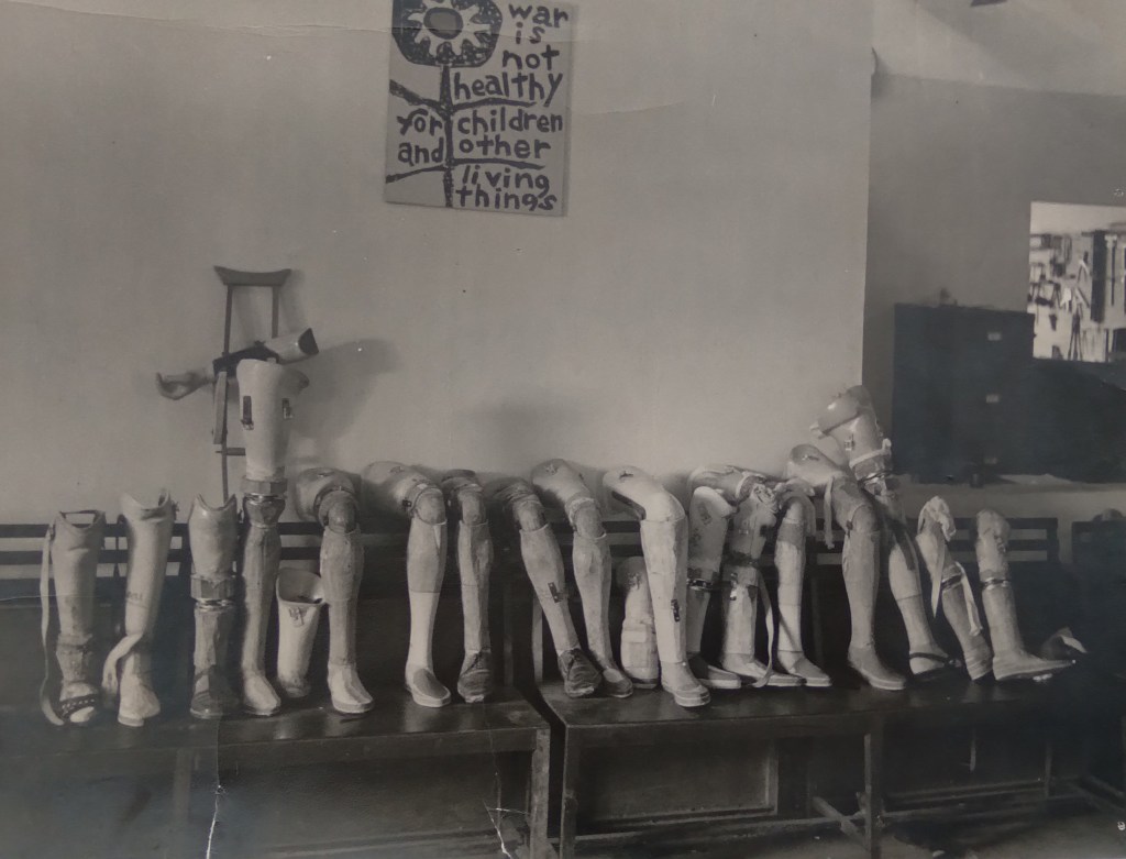 The AFSC humanitarian programs in South Vietnam consisted of medical visits to prisoners and a Rehabilitation Center where the western staff trained Vietnamese to make prosthesis, braces and Wheelchairs. The Rehabilitation Center was the only facility in the entire country to serve the non-military population: men, women and many, many children. All war-injured civilians were welcome at the Center regardless of political affiliation. The western staff were eventually replaced by their highly capable Vietnamese students. After the war ended in 1975, the new government continued operating the Center with all of the Vietnamese staff who wished to retain their positions. It was gratifying to visit the project and meet former colleagues in 2002 when